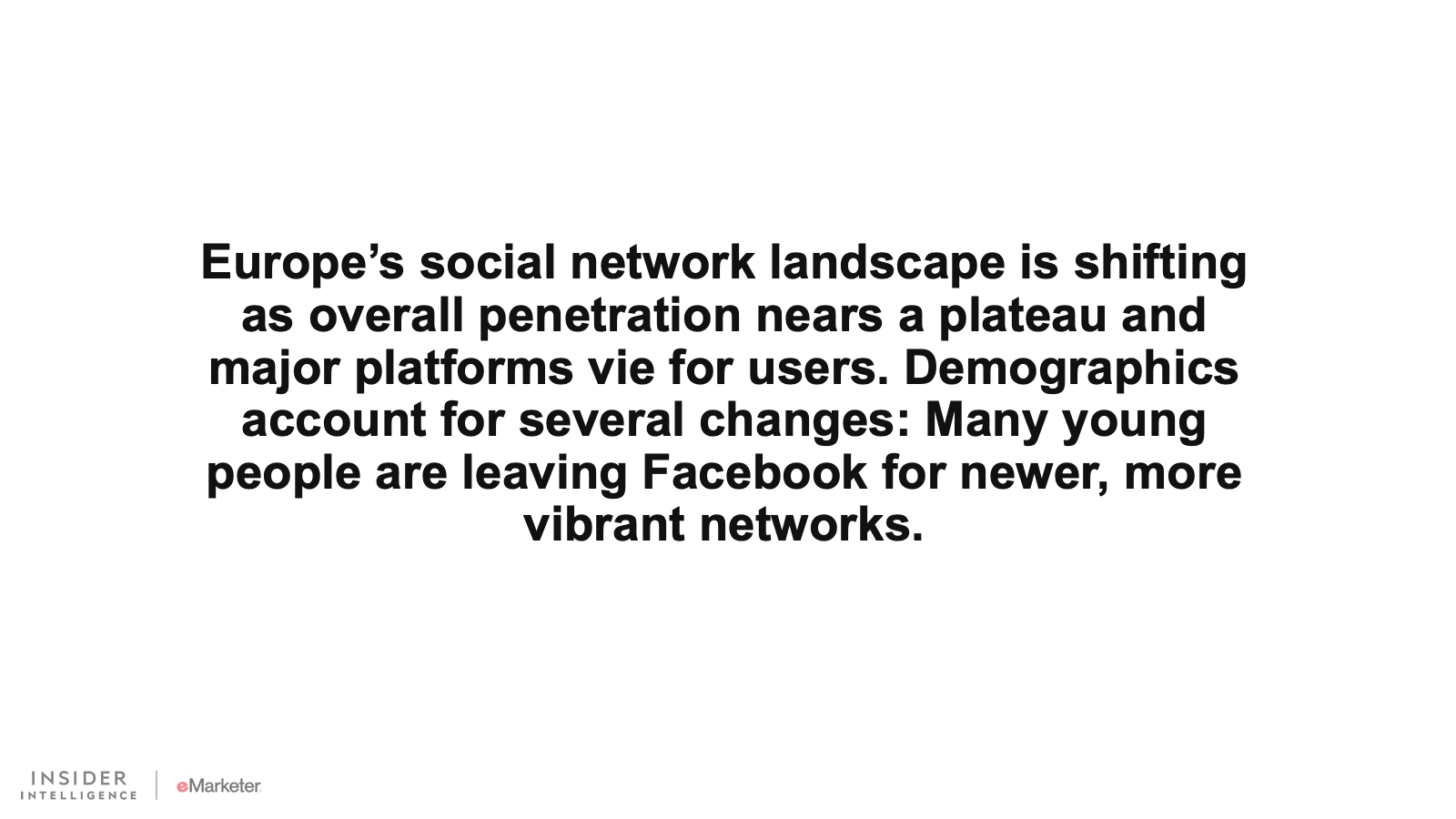 Europe’s social network landscape is shifting as overall penetration nears a plateau and major platforms vie for users. Demographics account for several changes: Many young people are leaving Facebook for newer, more vibrant networks.