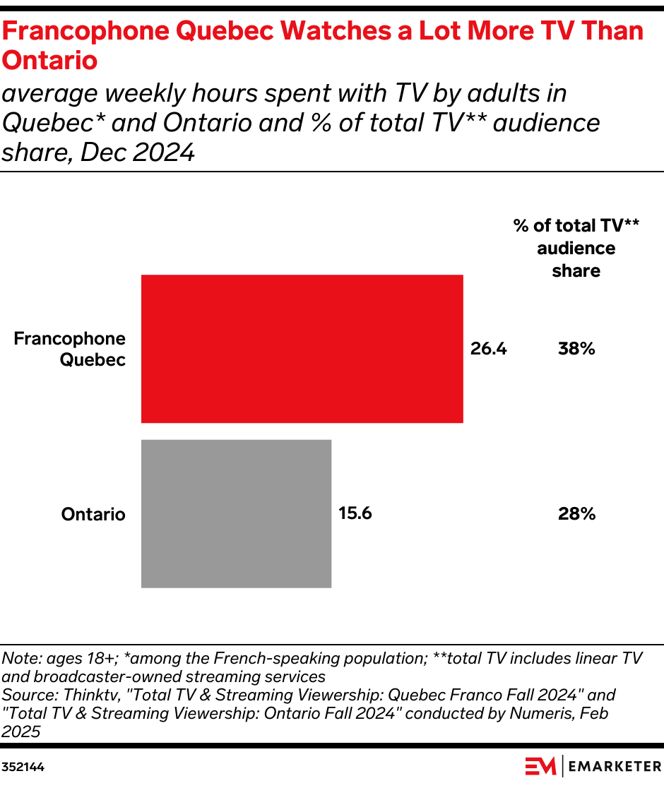 Key Stat: French-speaking Quebecois watch 11.2 more hours of TV weekly than do viewers in Anglophone Ontario.