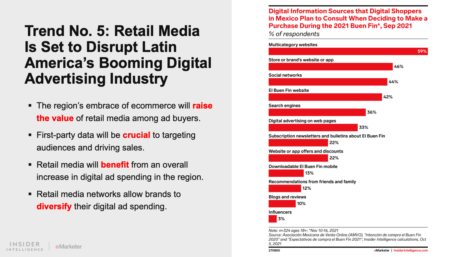 Latin America is no stranger to change, but consumers’ quick embrace of new digital habits grew at an unprecedented rate and scale like never before during the pandemic. In 2022, expect a surge in digital payment adoption, a change in consumer expectations around ecommerce, a struggle with sustainability issues, an embrace of social media by small businesses, and the rise of retail media networks in Latin America.