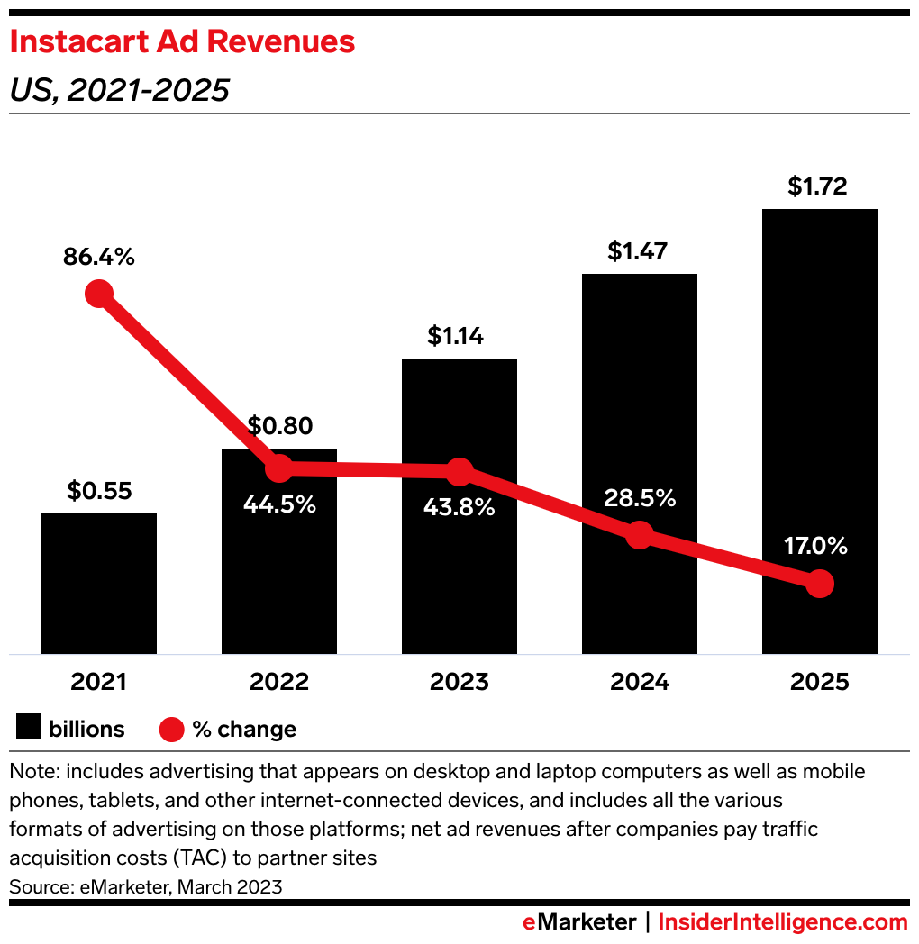 The news: Instacart’s retail media business generated roughly $740 million in 2022, up 30% year over year, per The Information.