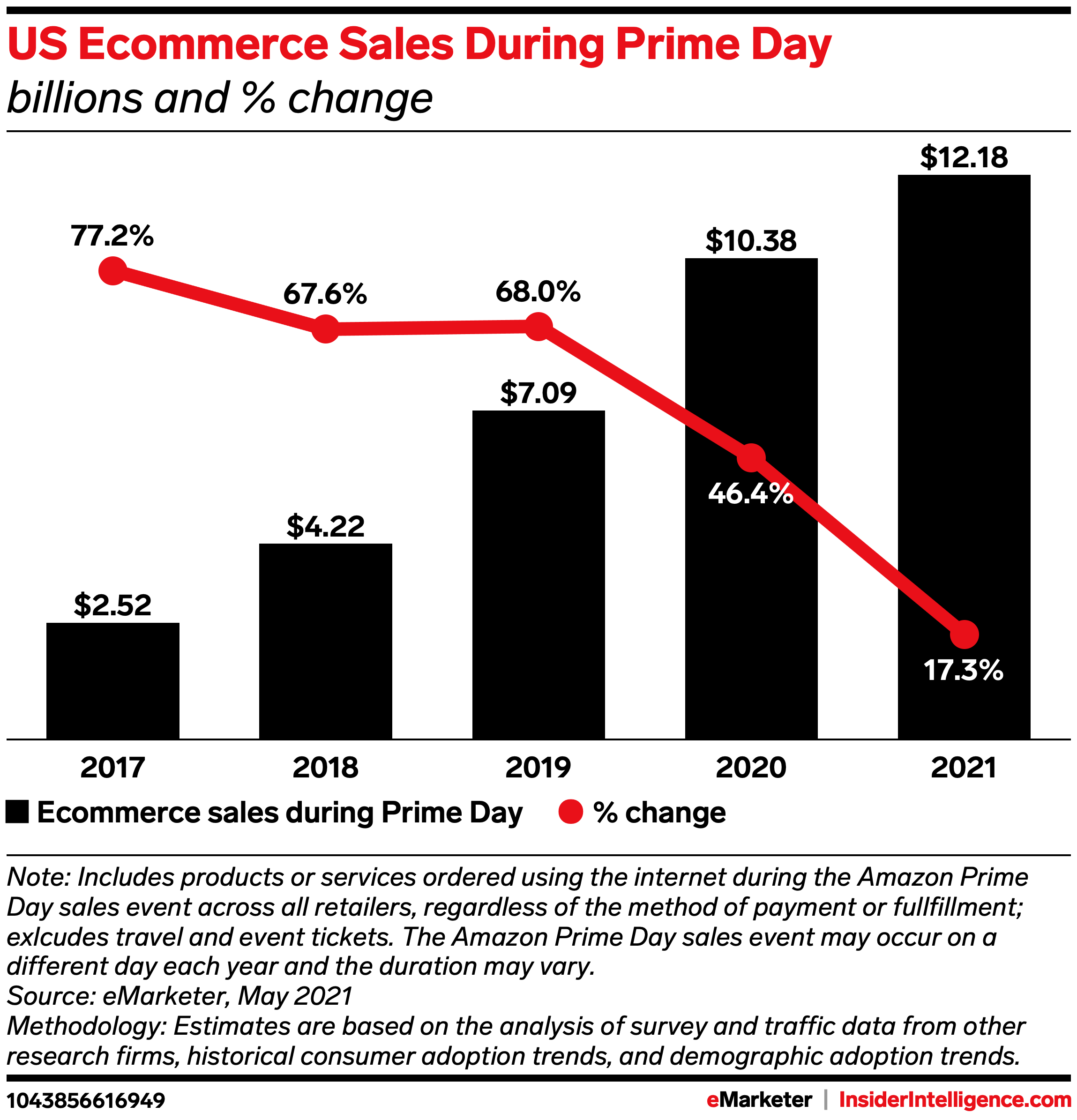 Target and Walmart’s strategy to counter Prime Day isn’t new, but it does point to heating competition. Last year, both retailers introduced events coinciding with Prime Day—which, as a result of the pandemic, was postponed from its typical July dates to October. These moves were likely meant to capture some market share from Amazon, whose 38.9% share made it the leader of the US ecommerce market in 2020, per eMarketer estimates from Insider Intelligence. In spite of the rival events, Amazon still managed to net $6.17 billion in sales during Prime Day, according to our forecasts. Walmart and Target didn’t release results on their respective events—though Target did say that its Deal Days sales more than doubled compared with 2019. But both retailers more than likely benefited from the pandemic-driven surge in online shopping on Prime Day, which saw $4.21 billion in non-Amazon ecommerce sales, per our estimates.