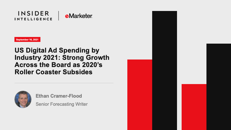 After an inconsistent year for digital ad spending in 2020, every industry in the US will increase their outlays in 2021. The retail, consumer packaged goods (CPG), and entertainment industries will provide the biggest boosts, driving up overall digital ad spending by 25.5%.