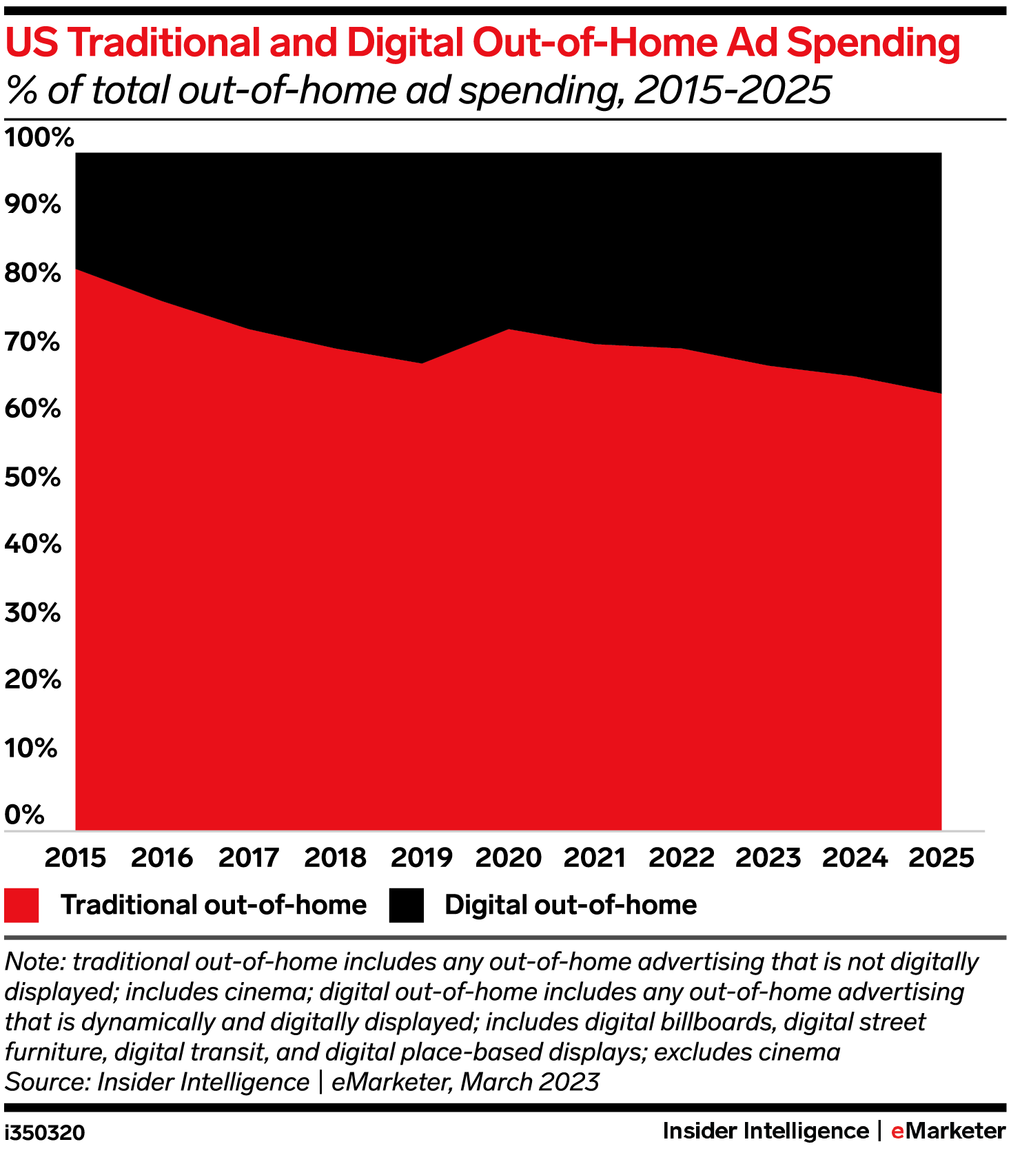 KEY STAT: In 2023, digital out-of-home (DOOH) will regain its pre-pandemic share of total outdoor ad dollars at 31.4%.