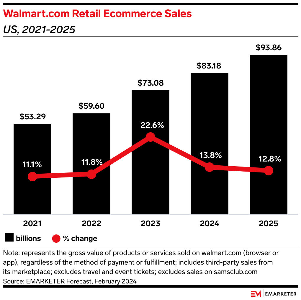 - Judging by the retailer’s ecommerce performance, that certainly seems to be true: US ecommerce sales rose 22% YoY, helped by expanded delivery options as well as considerable growth in the number of SKUs available on Walmart’s marketplace.